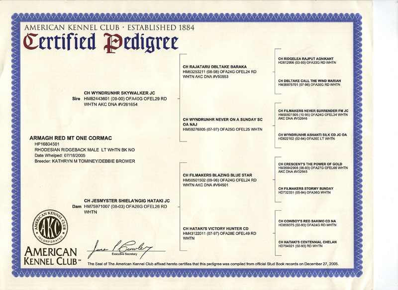 Bow Tie's pedigree and Bow Tie's AKC DNA profile.