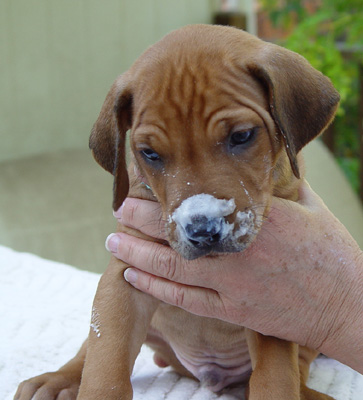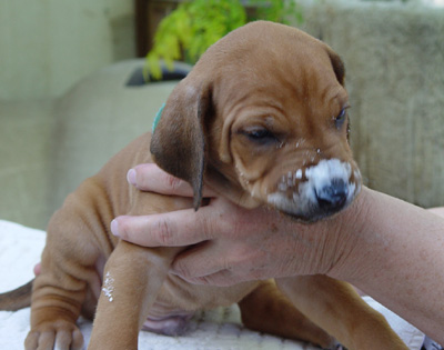 Armagh Rhodesian Ridgebacks Owners Group This area celebrates "Dark Blue" and his future owners! "Dark Blue" was born at 2:20 AM. He was 12 ounces with a nice ridge. Markings All four feet have white on tips of toes. He has a very small spot of white on chest.
