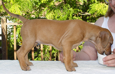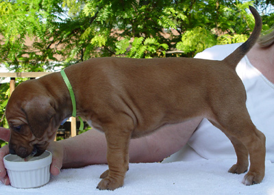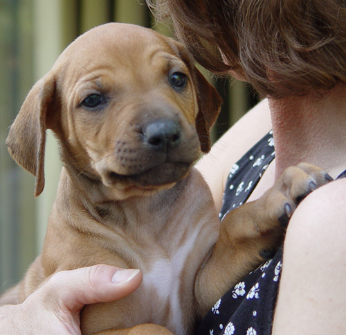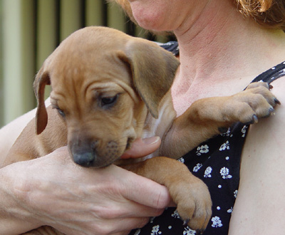 Armagh Rhodesian Ridgebacks Owners Group This area celebrates "Green" and her future owners! "Green" was born at 10:16 AM. She was 11 ounces with no ridge. Markings Dark front feet. Both rear feet have a small amount of white on toes only. She has a white T on her chest.