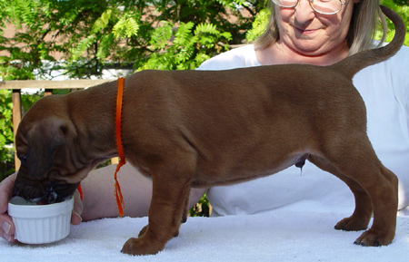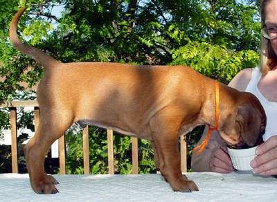 Armagh Rhodesian Ridgebacks Owners Group This area celebrates "Orange" and his future owners! "Orange" was born at 12:03 AM. He was 13 ounces with no ridge. Markings No white on feet, with small white dagger on chest pointing to belly.