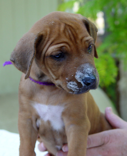 Armagh Rhodesian Ridgebacks Owners Group This area celebrates Arthur and his owners! Arthur was born at 11:47 AM, May 3rd, 2003. He was 13 ounces with a long and beautiful ridge. Formally Arthur was refered to as "Purple Male". He now has a new home and family. Markings Both front paws have white with excess on left front foot. He has a big white chest with strip of white running down center of tummy.